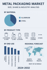 世界の金属包装市場は、その 比類のないリサイクル性、耐久性、そして安全性を背景に、2032年まで着実な成長が見込まれています。産業界が持続可能な包装ソリューションへと移行する中で、金属包装は世界の包装エコシステムの礎であり続けるでしょう。